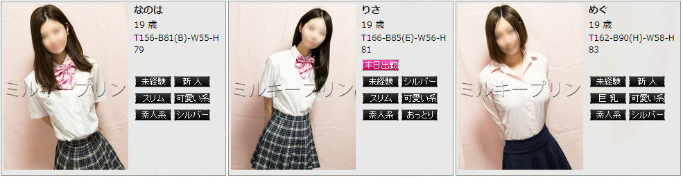 京都デリヘル「ミルキープリン」は、NNやNSの報告の多い嬢が多数おります。