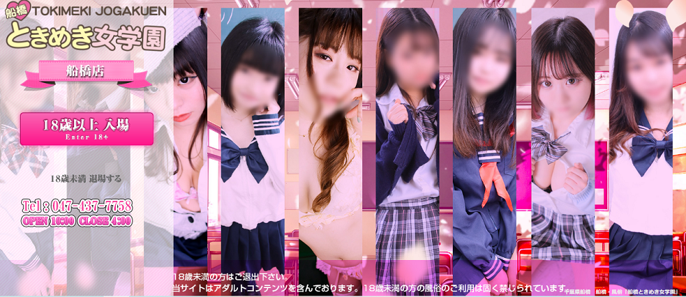 船橋ホテヘル「ときめき女学園」は、10代後半から20代前半の美少女と遊べる学園系のお店です。かわいい女の子が多数在籍しており、出勤数も地域№1の多さを誇っています。