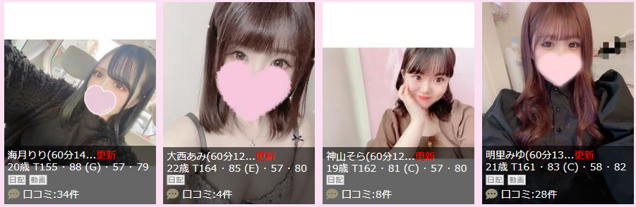 HPでは女の子一覧に150人以上のキャストが掲載されているので、その中から好みのタイプの女の子を見つけるのは簡単です。