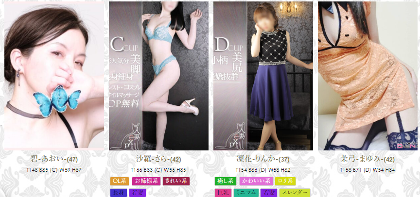嬢の年齢層は、20歳代の若妻から40歳代となっておりますので、そこまで年齢の高い熟女はおりません。