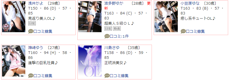 NNやNSできる嬢が多数いるようで、えちえちOLとの背徳SEXプレイを味わうことが可能です。