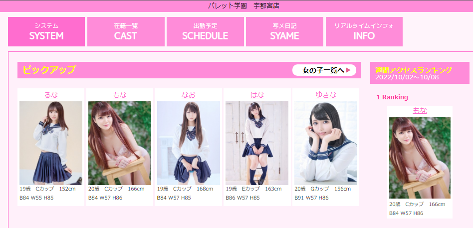 宇都宮デリヘル「パレット学園」は、やはり若い嬢が多く、コスプレ系なので、基本料金も高めになっています。