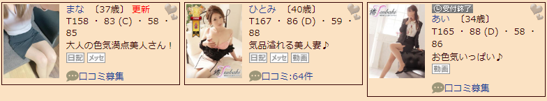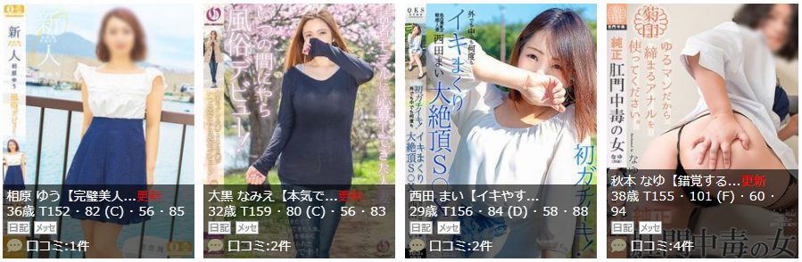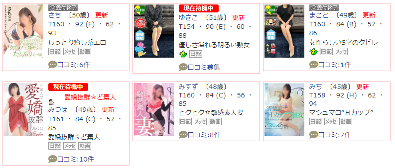 全体的に可能性を感じる嬢が多いようですので、熟女好きな方は、熟女と濃厚な時間を楽しめる可能性大です!ワンちゃん狙って入ってみましょう。