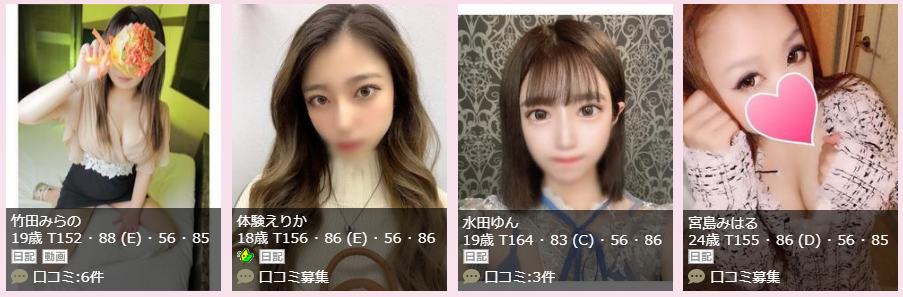 10代後半から20代のルックス・スタイルが良い子が在籍しています。実際に顔出ししているキャストが多く在籍しているので、安心してキャストを選ぶことができそうです。