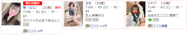 写真はほぼ全員が顔を隠しているのですが、黒髪ロングの女の子が多く、清楚系のお店だという事が伝わってきます。