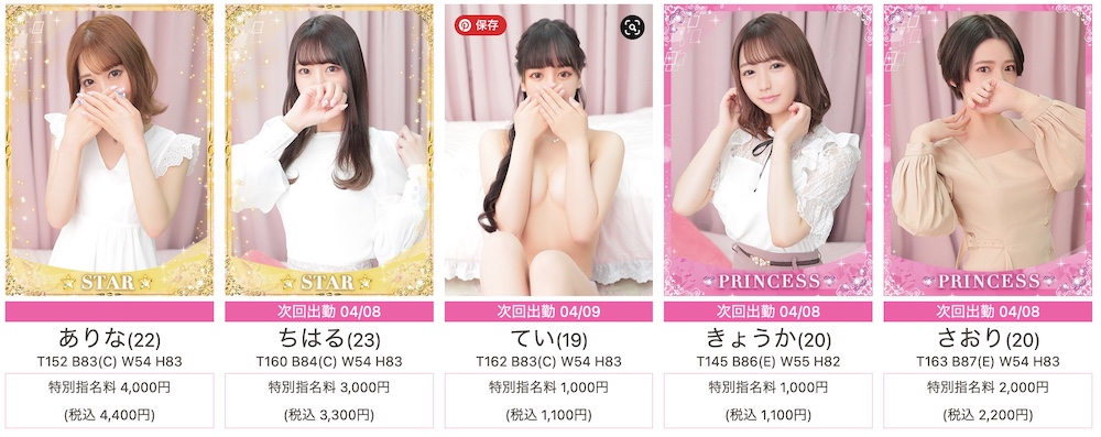 指名料は女の子によって1,000円〜4,000円とさまざまなので、HPで確認して見てください!