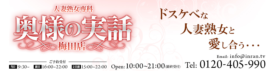 梅田デリヘル「奥様の実話」は、30代から50代のドスケベな人妻熟女と遊べるお店です。