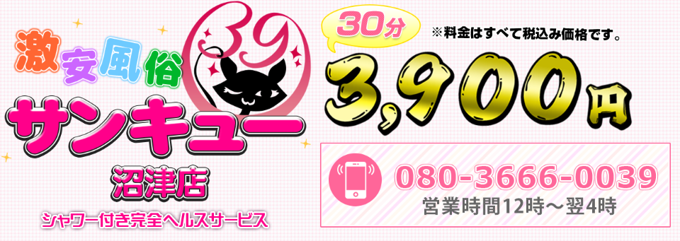 沼津デリヘル「サンキュー」は、3,900円という破格の値段設定があるお店です。沼津で紹介している他店はここまで高級路線のお店でしたので、唯一の格安店となります。